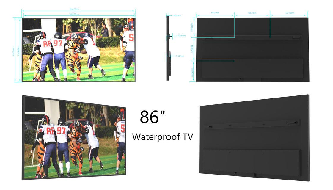 86インチ 2000nits 4K 大型 IP55 防水 屋外テレビ 壁マニュート